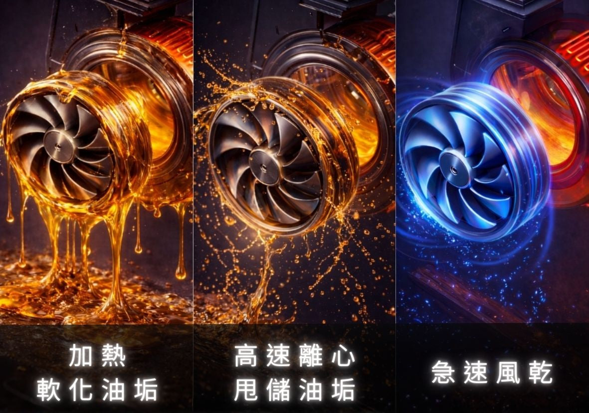 三段式自潔淨科技|高溫分解 × 離心甩油 × 急速風乾